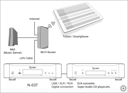 N-03T исполняет мечту любого меломана: свободно слушать музыку со стула в гостиной и наслаждаться самым лучшим качеством звука. Основной источник звука DSD обеспечивает кристально чистое звучание, ваша коллекция компакт-дисков упорядочена в библиотеке для легкого доступа, а службы потоковой передачи помещают новую музыку у вас под рукой. N-03T — это сетевая аудиотранспортная система, специально разработанная для подключения к внешнему ЦАП или встроенному ЦАП проигрывателя Super Audio CD через USB-соединение. Кроме вашей аудиосистемы, все, что вам нужно, это домашняя локальная сеть (маршрутизатор Wi-Fi и т. Д.), Планшет или смартфон и NAS (музыкальный сервер) для хранения вашей музыкальной библиотеки. Это все, что вам нужно для легкого и комфортного прослушивания музыки, когда вам не нужно идти на компромисс с качеством.